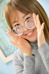眼鏡はフレームが大きめなので渦や輪郭の歪みもかなりのもの。これでも薄型の加工だと言うから驚かされます。