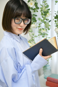 今回撮影させていただいたのはフレーム太めの黒縁眼鏡がとてもよくお似合いなまことさん。