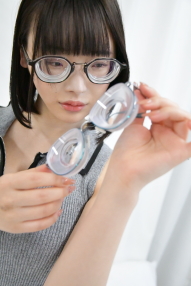現在の度数は-22D。今回はメインで使われている黒縁のものと、側面の渦を軽減させた小さいフレームのもの、2種類の眼鏡をメインに撮影しました。