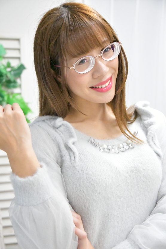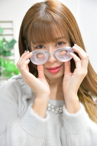 そして現在の視力は測定不能、レンズ度数は左右ともに-19D。正面からお顔を見ると大き目のフレームの眼鏡であるにも関わらずレンズ越しの輪郭が内側に歪み、それだけでも「目が悪そう感」を感じることができるかと思います。